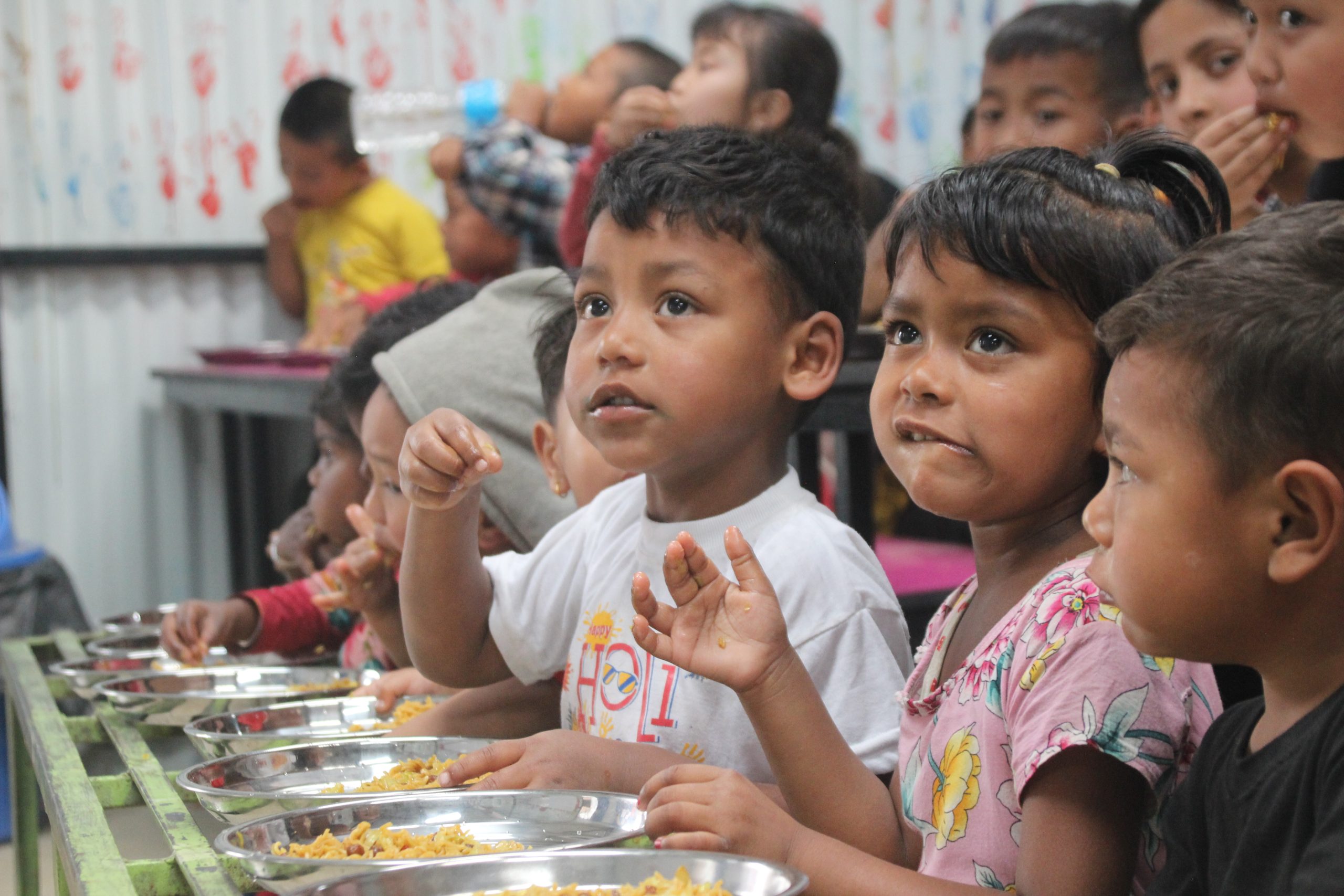 照片為彩虹公益社(香港)於尼泊爾加德滿都的『零飢餓學習中心』展開供餐服務,為當地兒童提供溫飽與關懷。該中心由彩虹公益社(尼泊爾)營運,並致力於支援兒童教育與成長。拍攝日期2025年3月19日。